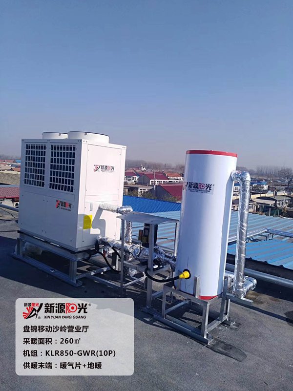 供暖面积:260㎡         机组:新源阳光10P空气能热泵机组         采暖末端:地暖+暖气片